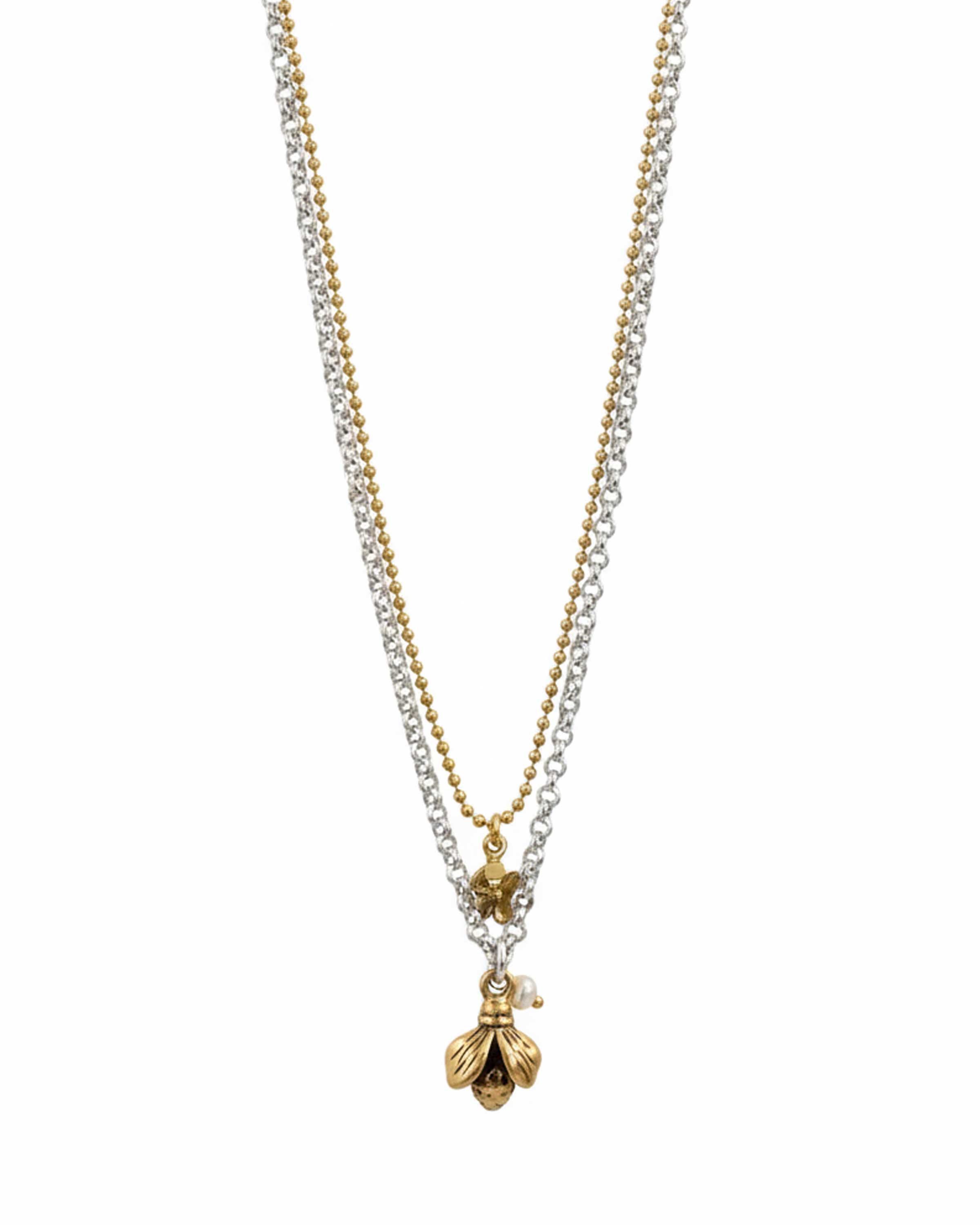 Gold and silver plated brass. Length: 42 cm + 5 cm flex