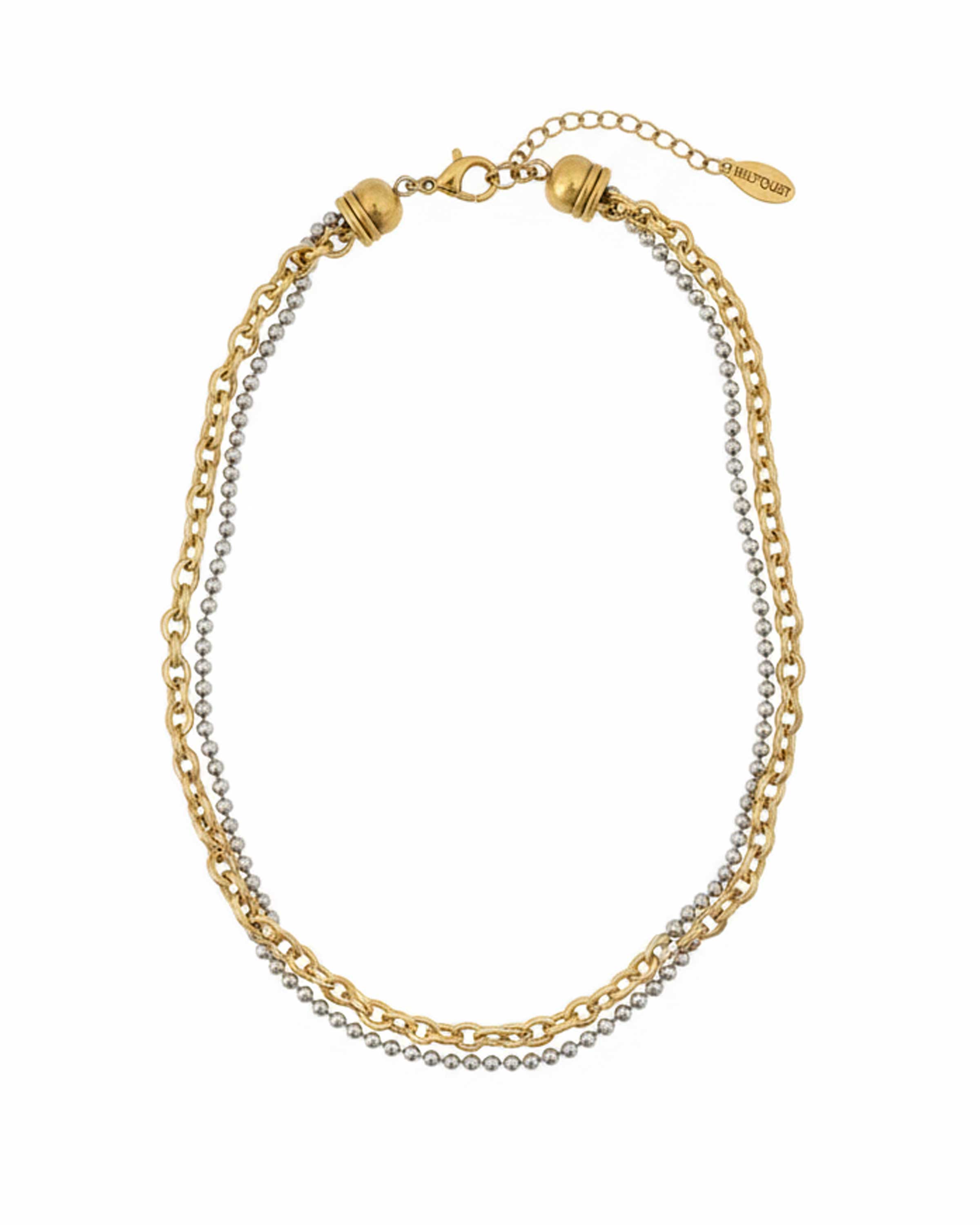 Gold and silver plated brass. Length: 42 cm + 5 cm flex