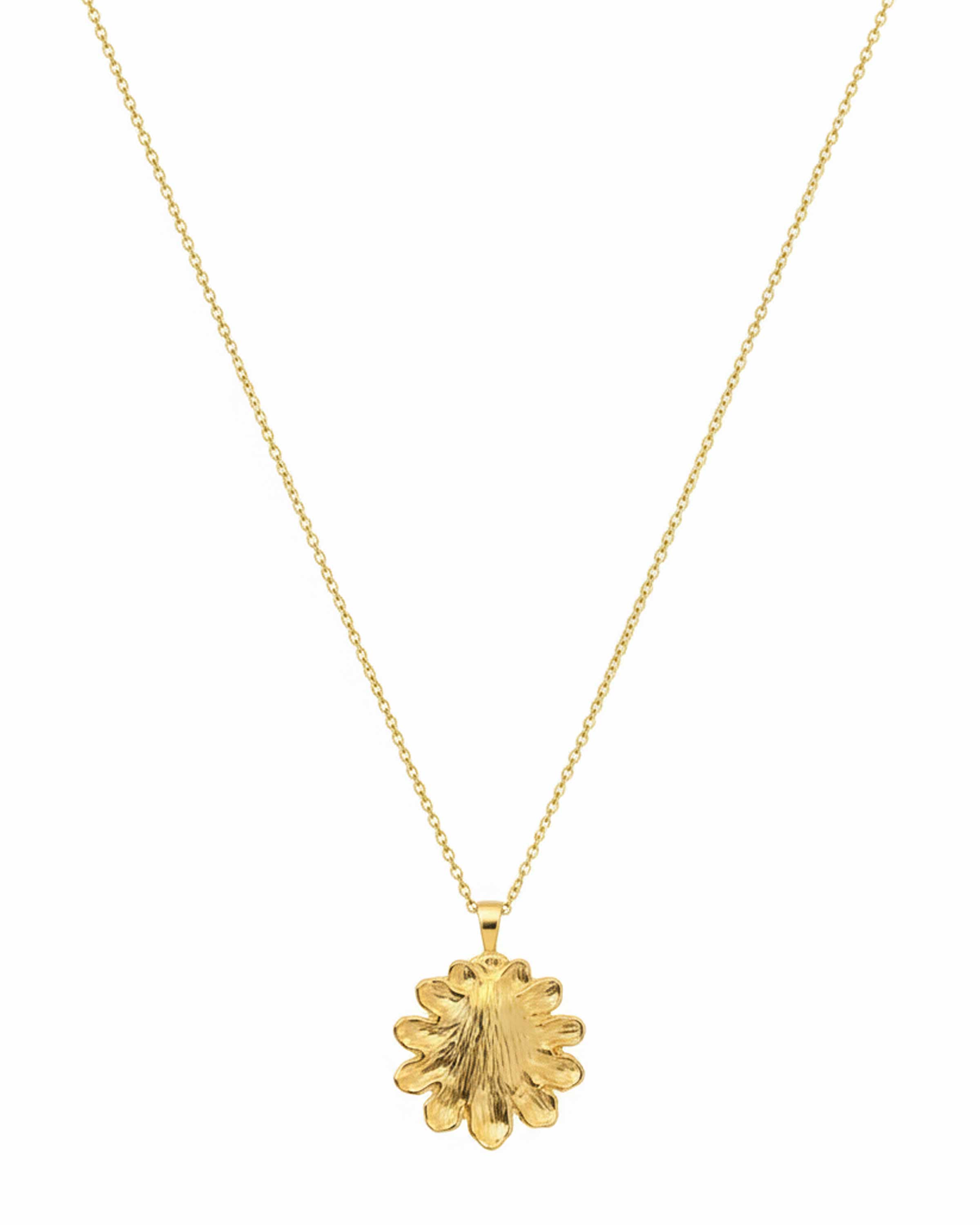 The Sol Shell necklace features a beautifully detailed, sunburst-inspired shell pendant that captures the essence of coastal elegance. This statement piece hangs from a delicate gold chain, offering a warm, radiant glow that transitions perfectly from sunny days to sophisticated evenings.